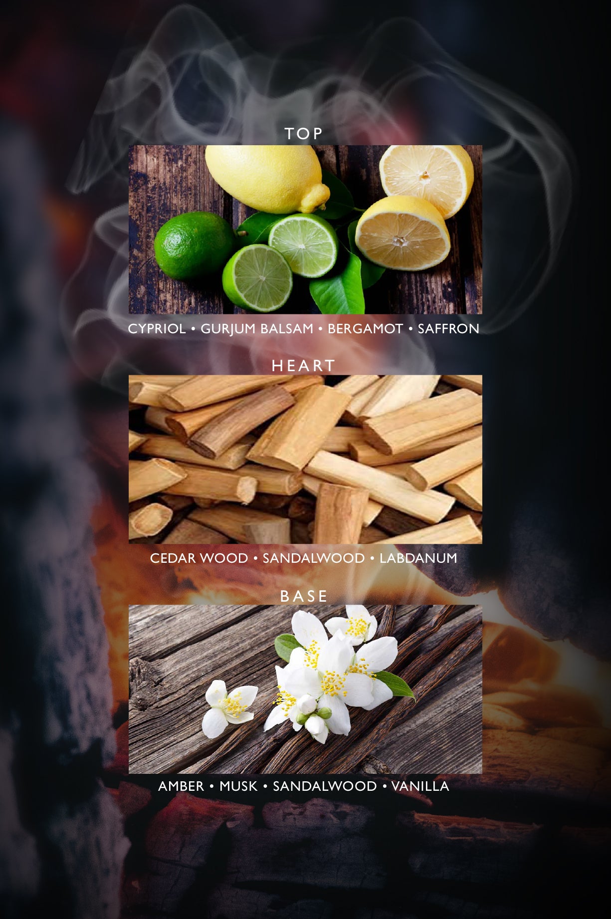 Heart Notes: Cedarwood,Sandalwood,Labdanum